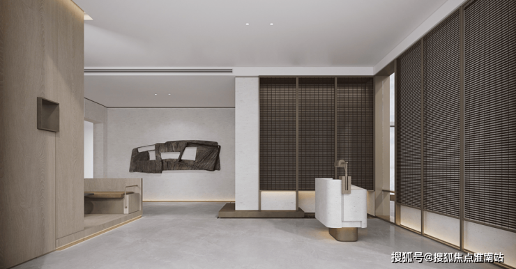 比起中规中矩的直线,弧形施工工艺更复杂、造价更高,却多了几分灵动轻盈!这种弧形的元素不只是在样板间里,在售楼处也能经常看到,比如电梯厅。