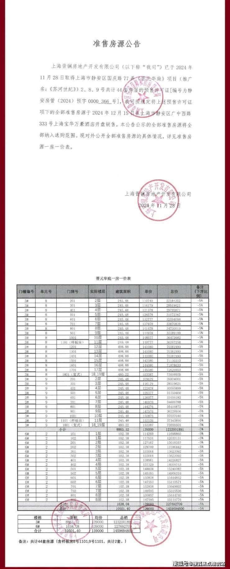 静安内环苏州河板块「华发仁恒苏河世纪售楼处电话:400-8118-224」二期即将加推的是3#、6#两栋住宅,共44套。主力建面102-245㎡3-4房,另有6套大平层和2套复式。具体如下:16套约102㎡3房、20套约245㎡4房、6套约495㎡大平层、2套约499㎡复式。