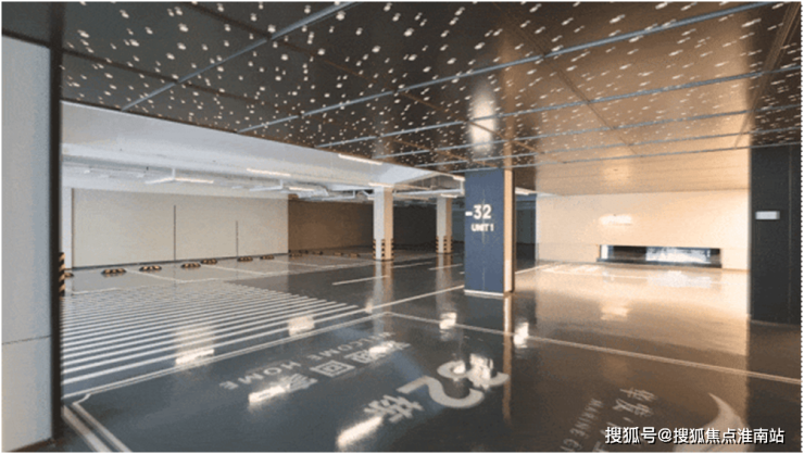 地下车库是当下市场流行的星空顶设计,兼具美观度和实用性,入眼即为满天星铝板,抬头就是“星辰”闪烁,氛围感十足。
