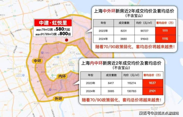 据小胖君统计,2024年中外环新房(不含宝山)套均总价达1115万,内中环新房(不含宝山)套均总价达2101万。