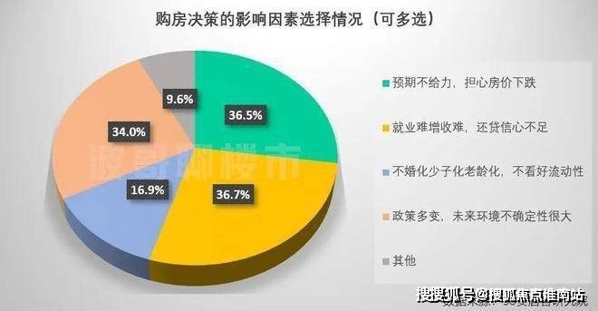 受访者中,有36.7%的人担心就业与收入不稳影响房贷偿还,36.5%的人害怕房价会继续下跌而不敢入市,另有34%的人对未来环境没有积极预期。