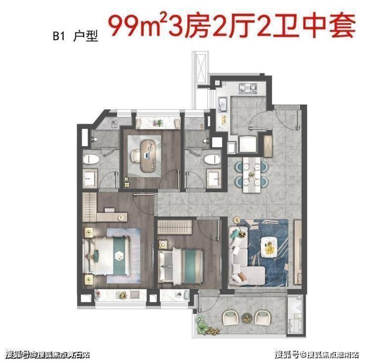 99平三房,参考总价554-585万