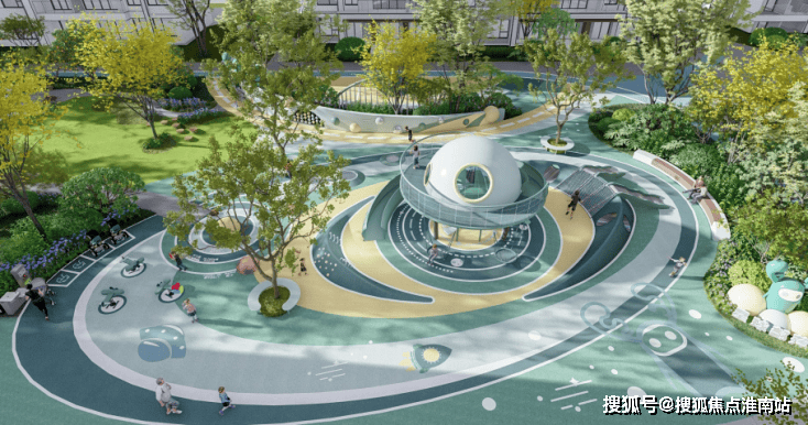 以江南人文精神为源点,打造 两轴一环五进空间,江南礼序归家轴串联启迎盛礼、筑阙会友、归家华堂等5重礼制。尊崇归家;健康运动轴以24小时跑道为社区活力生活环,串联儿童乐园、长者康养、疗愈花园等 10大生活场景,营造全龄全时的江南诗意生活。