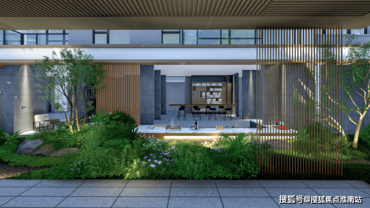 约7000㎡中轴景观,涵盖约3500㎡多功能中央草坪和约200米景观长廊,日常簇拥花间草木,让建筑与绿意和谐生长。