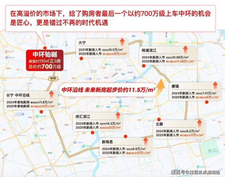 最重要的是,这个700万级诞生的节点,正是上海中环沿线高溢价率新房层出的市场,除了南大这个“处于价值爆发前夜”的原始股外,其余地区的新房价格都在飙升。