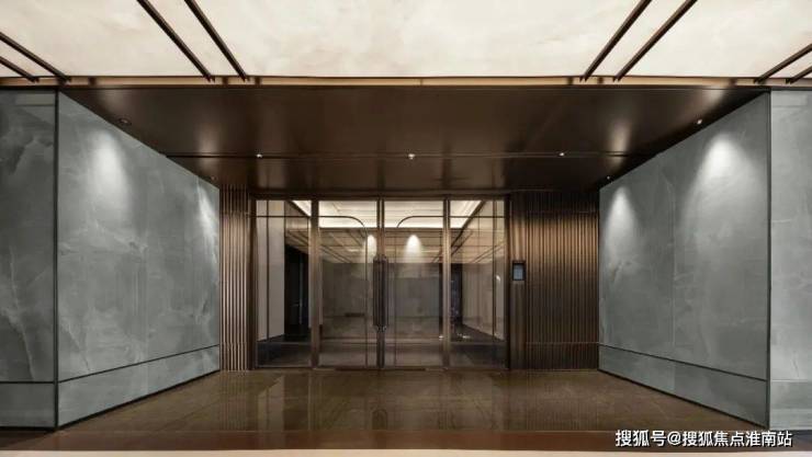 车库入户大堂,也是超乎预期,做出了苏州罕见的地库玄关,天青色岩板背景墙、无主灯吊顶工艺、智能可视对讲……满屏高级生活格调。