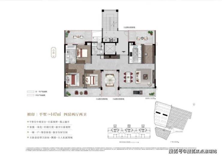 建面143-158㎡平墅单元融合大平层与别墅产品优势,北向露台进深优化至2.45米,配置L型观景露台系统。创新性增设侧向延展露台,配合18.9米全景宽厅设计,打造270度景观界面,实现超越传统大平层的别墅级居住体验。