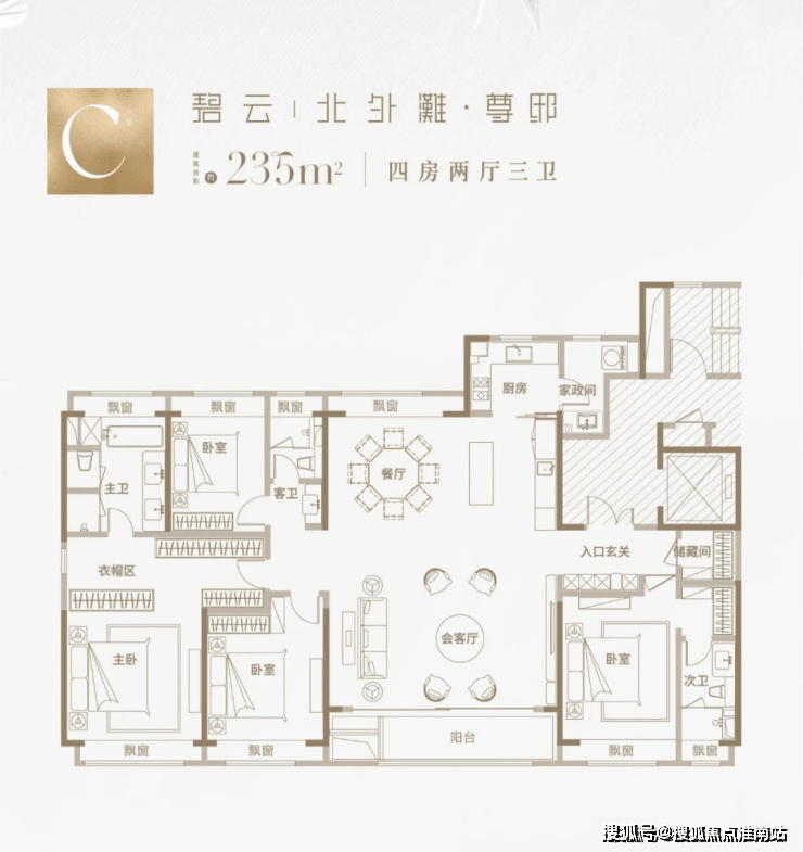 那么实际居住体验如何,我们可以参考已开放的建面约235㎡样板间: