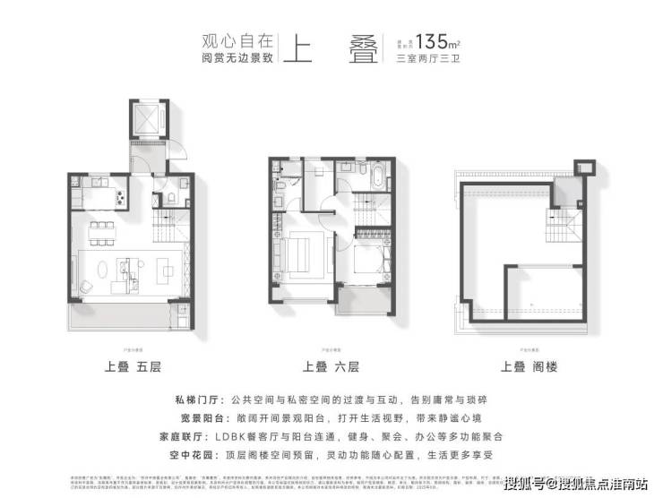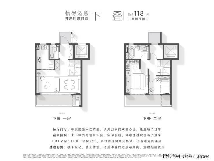 上下两层不完全重叠,奇偶层相互咬合向上排布,做到不同格局却始终3个卧室均朝南!南向面宽可做到约9.7米,采光面舒适度媲美建面约180㎡+大平层。