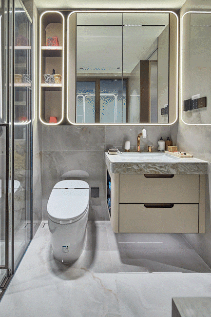 保利天奕还是上海首个引入美妆龙头的项目 ,结合美妆冰箱、美妆镜柜、双补光设计组成女神四件套, 这份难寻的巧思,将日常护肤化妆的仪式感拉满。美妆龙头不仅能有效过滤硬水,呵护肌肤,还具备多角度旋转功能,无论调节漱口出水,还是冲洗美妆工具,水流都能精准到位。