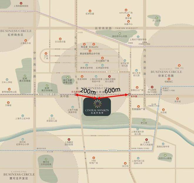 周边配套 :古北中央萃位于古北国际社区,而古北国际社区作为上海第一代国际住区,历经30多年发展和建设,形成了独特的国际居住氛围,据说古北和西郊居住着上海近1/4的外国人,堪比“联合国”,有底蕴更有底气。