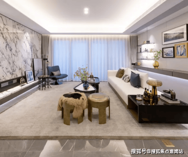 建筑风格:现代简约 + 新中式融合,浅灰色真石漆外立面搭配金属线条,质感高级,最大楼间距达 60 米