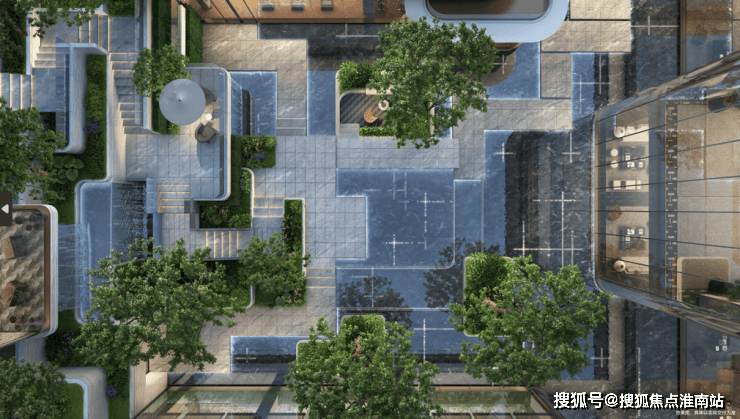 项目以外滩精奢酒店&江湾蓝绿臻境为灵感,打造三重台地悬瀑自然庭院!