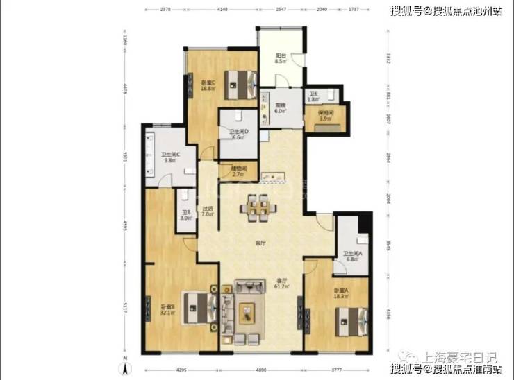 面积:219.87平3房2厅3卫含产权车位