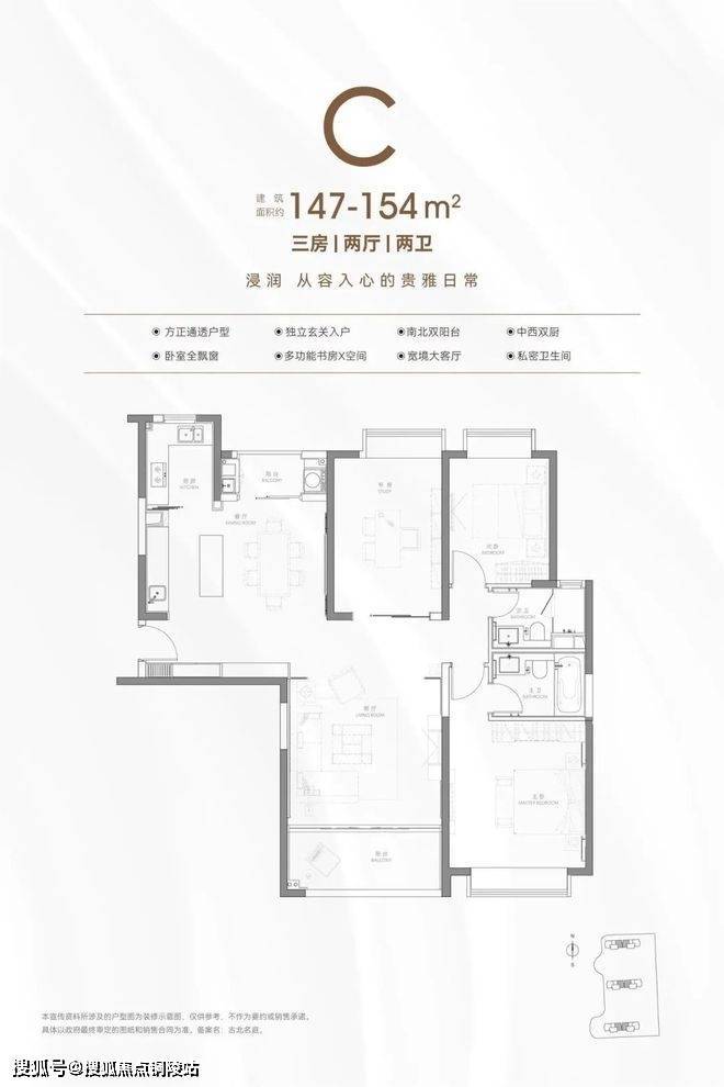 特点:层高3.015米,得房率约80%,南北通透,主卧套房设计