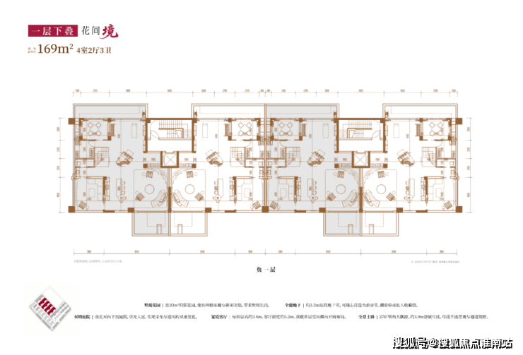 项目主打3层的超低密洋房产品,另有3套联排产品,户型类型丰富;洋房为创新的多层退台式洋房,层高高于传统常规洋房产品,3.3-3.6m层高对标别墅产品层高。