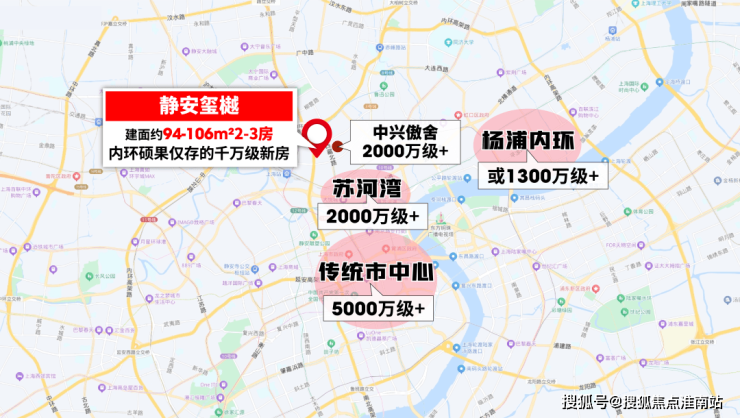 静安玺樾所处的苏河湾板块目前主力总价超2000万+,如果买距离更远的杨浦,也要1300万起步。别忘了,中小套型政策调整,未来市中心小户型供应将进一步缩减。
