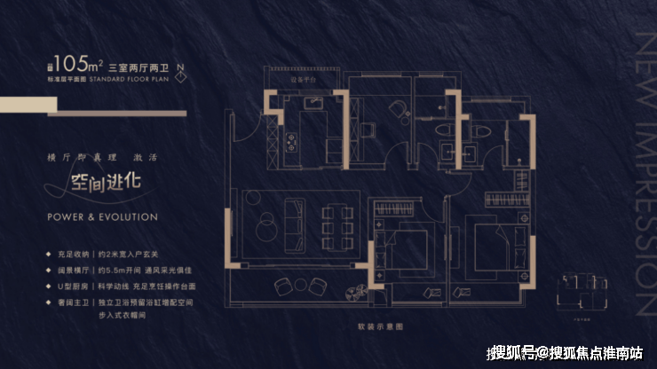 105㎡三居户型,总价170万起,适合首次购房的年轻家庭,享受科学城发展红利。