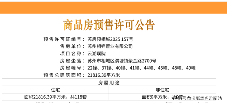 最新,位于相城的云湖璞院再次取证,共118套房源。