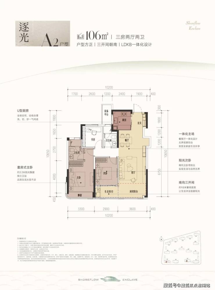 户型优选南北通透方正布局,开间与进深比1:1.5为佳,避开暗卫设计。