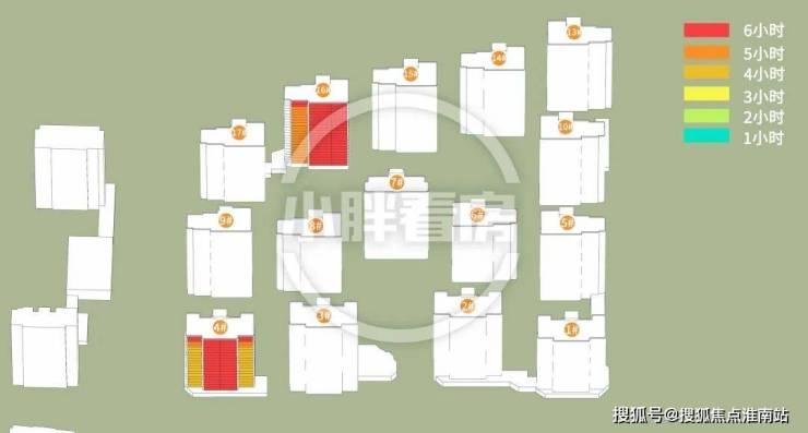 楼栋朝向正南采光优异。4#16#由于自身建筑形体原因,部分边户会受自身中间户遮挡,日照时长从高往低有所折损。