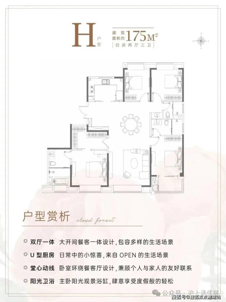 建面约175㎡4房3卫,几乎是上海改善的终点户型。