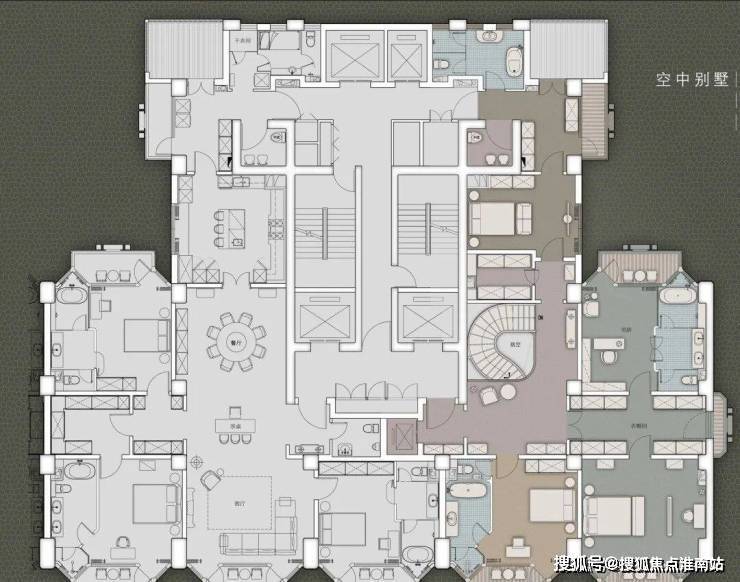 住宅部分全部大平层(复式)设计,单套面积约370-1500㎡,全部精装交付。