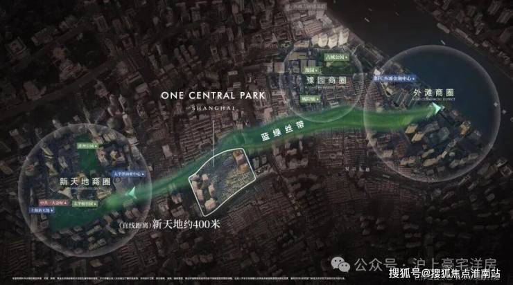 距离新天地直线距离约400米,作为蓝绿丝带规划上的关键节点,随着大新天地东进南拓战略逐步实施,通过 水景、绿地和公共空间,串联 新天地、豫园、外滩三大世界级商业版图。