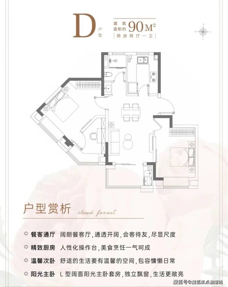 建面约98㎡3房:可以说这款户型满足了市场对刚需、刚改入门面积的所有需求, 经典的三开间朝南飞机户型设计,最大化利用空间,减少面积浪费,整体格局方正南北通透。