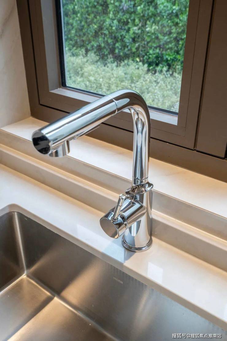 值得一提的还有,精选白金沙岩板通铺,岩板接缝处采用隐形无缝工艺,杜绝藏污纳垢…采用摩恩水槽,节能实用…前置过滤器、末端直饮水,干净便捷…厨柜下方感应灯带方便拿取,统统都提高了你下厨的幸福感。