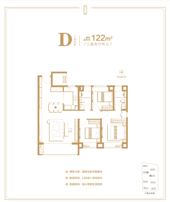 四房:建面约122㎡(可改3+1房)