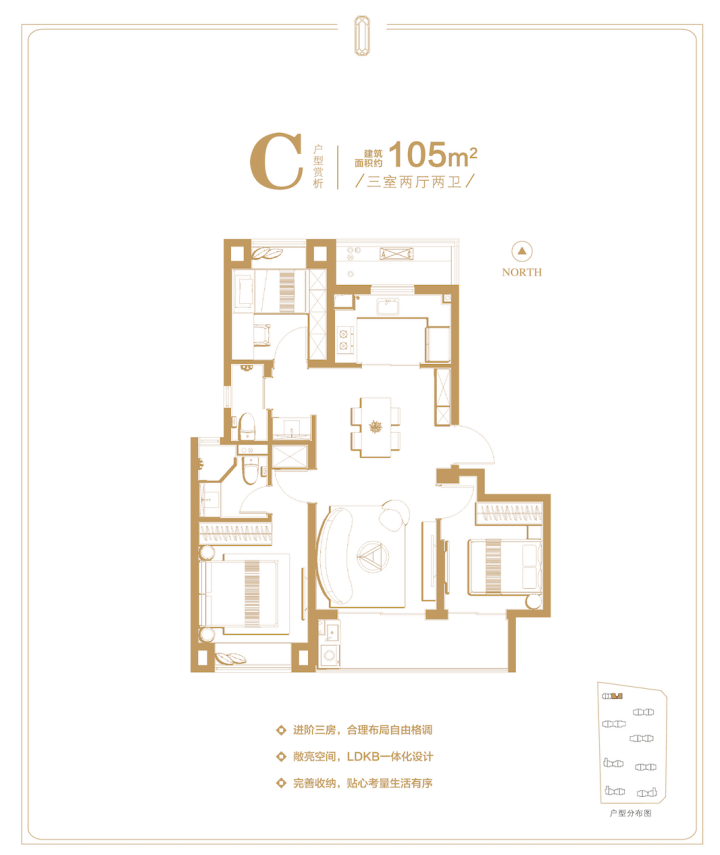 105㎡三房:总价约440万/套