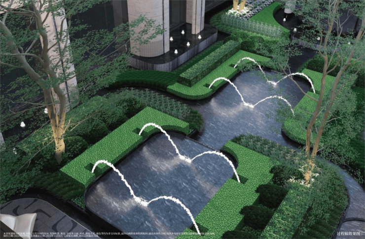 中央休闲庭院空间,一场浸润灵感的艺术水景,自然与潺水和鸣间,分享生活的乐趣与奇妙。