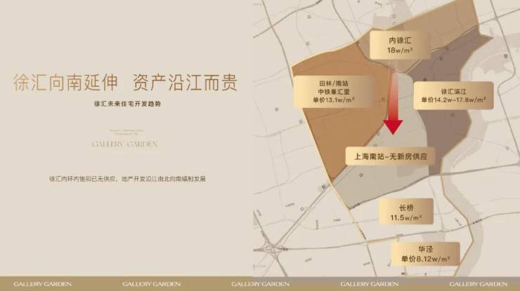 从徐汇开发趋势来看,徐汇向南延伸已成态势。近年来,徐汇作为热门的主城板块,住宅土地供应日渐紧张。随着内徐汇向南延伸,徐汇滨江以绝对实力承接了内徐汇的高单价,而随之南向开发的不断深化,上海南站区域暂无新房供应,而更靠近滨江的长桥板块相较之靠近徐汇腹地的田林、南站板块置业门槛更低,是典型的土地发展红利期。