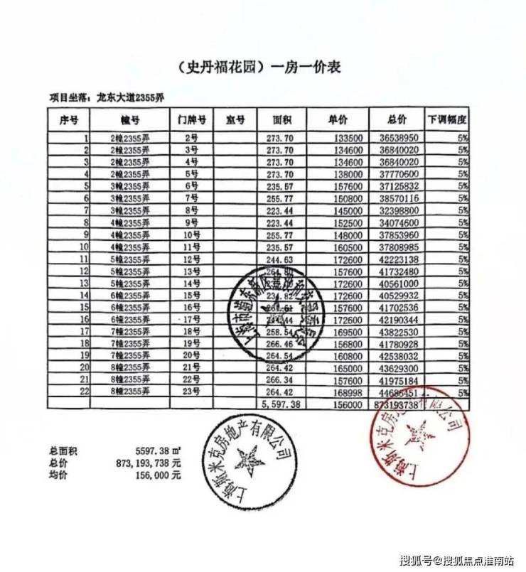 一房一价表
