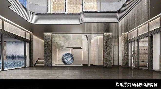 项目利用下沉式景观庭院,结合艺术花园、摩登水景等,打造了一座高端的下沉式会所,规划设有泳池、健身房、行政酒廊等场景。