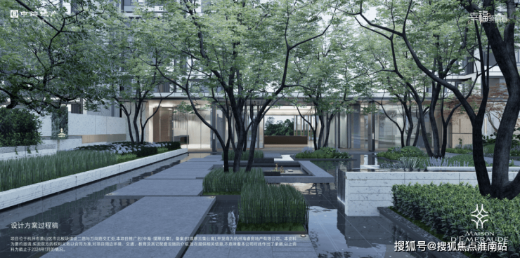 切换到小区主入口,以院落、水景、长廊形成了系统化场景串联,以泗水归堂为节点,把喧嚣城市代入静谧园区,形成酒店般的归家感受。