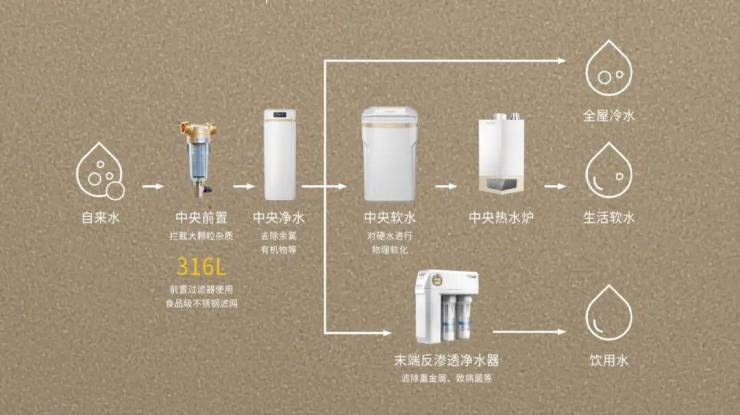 ✔全链路净水与软水系统:从自来水进入楼栋起,便通过医用级不锈钢过滤系统处理;连地暖管道使用的都是软水。