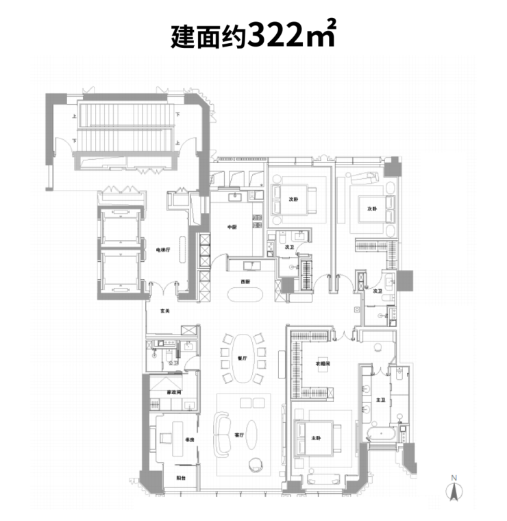 以建面约322户型为例:
