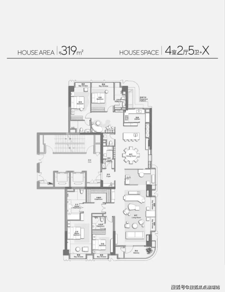 ▼ 建面约319㎡4房2厅5卫