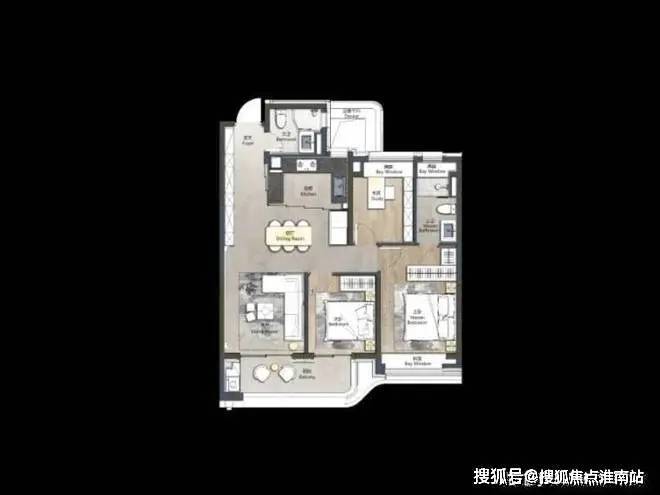 其中,建面约105平3房户型是空间布局的典范之作。