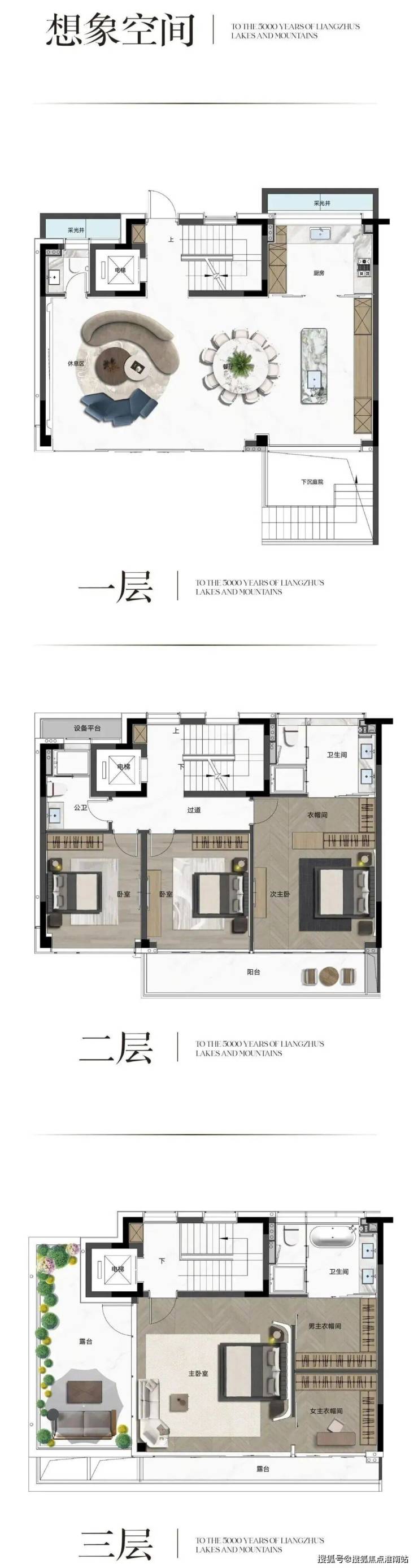 台地高差赋予了建筑更强的层次感,地面花园变成了“露台式花园”,而露台则变成了“空中的私人会所”,连卧室大落地窗都变成了“悬浮于林梢的取景框”,将良渚的自然肌理与人文景致尽收眼底,私密性与视野感双双拉满。