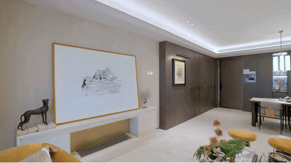 一进|隐园之境:整个翡雲悦府拥有相当宽奢的入户门庭,昂贵的用料、精致的线条与柔和灯光,奢华而有腔调。