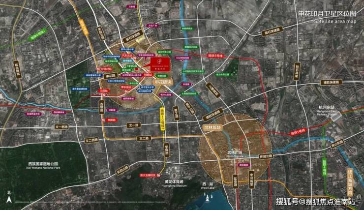 以【申花印月】为原点,一条莫干山路直通武林广场;一条学院路直通黄龙、西湖;一条秋石高架直通钱江新城,从整个交通组织以及空间肌理上奠定杭州主城正芯的格局。