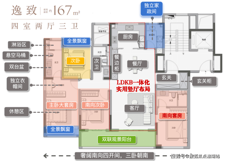 尺度升级,拥有独立家政间,高端豪宅必备!引入“南向双套房”舒适搭配,三代同堂都无压力,尊重每一代人的私密需求。