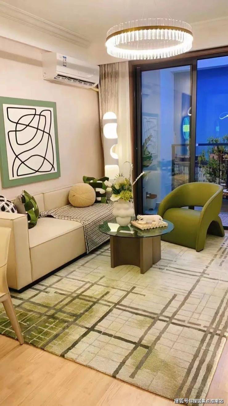 客厅外接南向瞰景阳台,不仅进一步增强了室内的尺度感,更为日常生活增添了一抹绿意与宁静。
