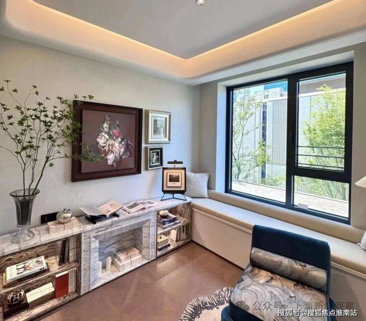 8、不仅是金钱上的奢侈,更是时间广度的奢侈。比如,整个下沉式庭院材料选用土耳其进口老虎玉,由匠人耗时60天手工打磨定制,可见海上·清和玺对业主归家仪式感设计的用心与苛求。海派光厅之外的归家迎宾树木更是由设计师辗转多个城市才寻到的、树龄超60年的福木“紫薇”。