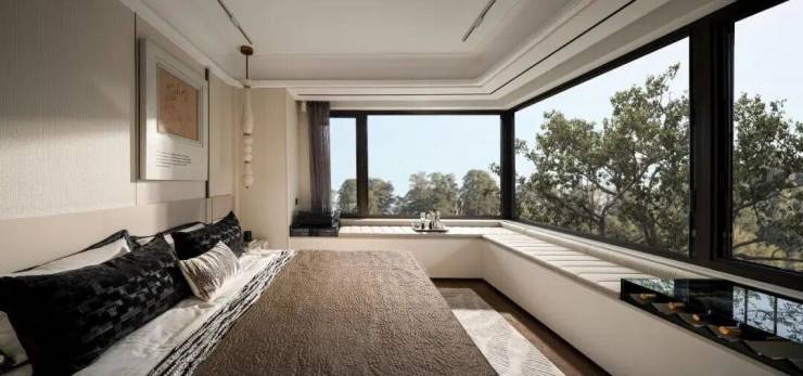 就连主卧也暗藏惊喜,约 270° 无柱式转角飘窗搭配双面采光的卫生间,让居住更澄澈舒心。