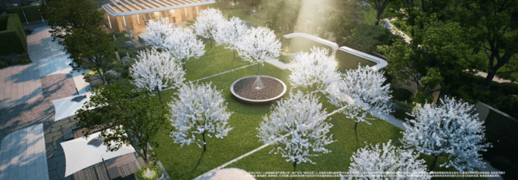 内部有三大全球花园,外部也紧邻已经实景开放的休闲绿地,出门就是浓浓的松弛感。