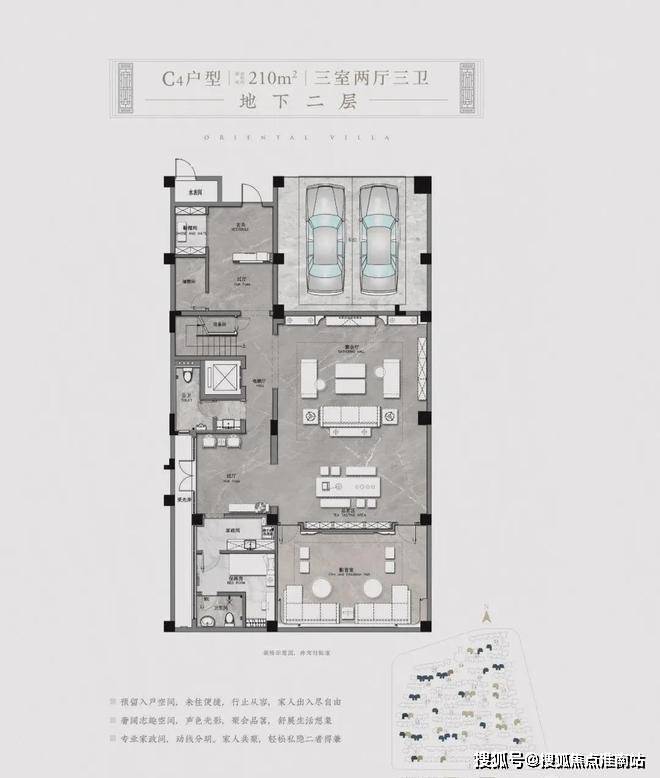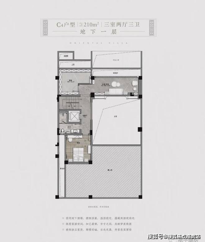 在建筑空间设计上,富春御园实现了传统院墅的现代革新。项目采用两层地面+地下室的创新布局,以170-320㎡的灵动尺度,打造出户户带庭院的中式合院。建面约320㎡的隐世合院以江南古镇为原型,约一亩地的家庭院落内亭轩错落、假山流水,目之所及尺度奢阔;而210㎡舒居合院则以约12m的南向开间,升级了人居体验感。这种既保留东方隐逸情怀,又融入西方享乐主义的设计哲学,使富春御园成为当代名仕的"第一居所"